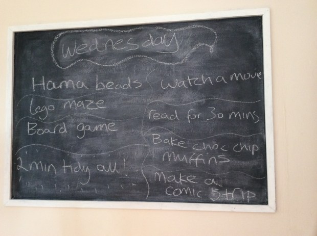 This is our Wednesday battle plan for surviving an 8-5.30 work day filled up with 6 kids ranging from 1yr to 10yrs! We do these every year but it’s usually just for me and my girl as our house is usually otherwise filled with much littler ones who can’t read, so this year I’m excited to see our lists (hopefully) ease us through our day with older children who can read and act on the suggestions!